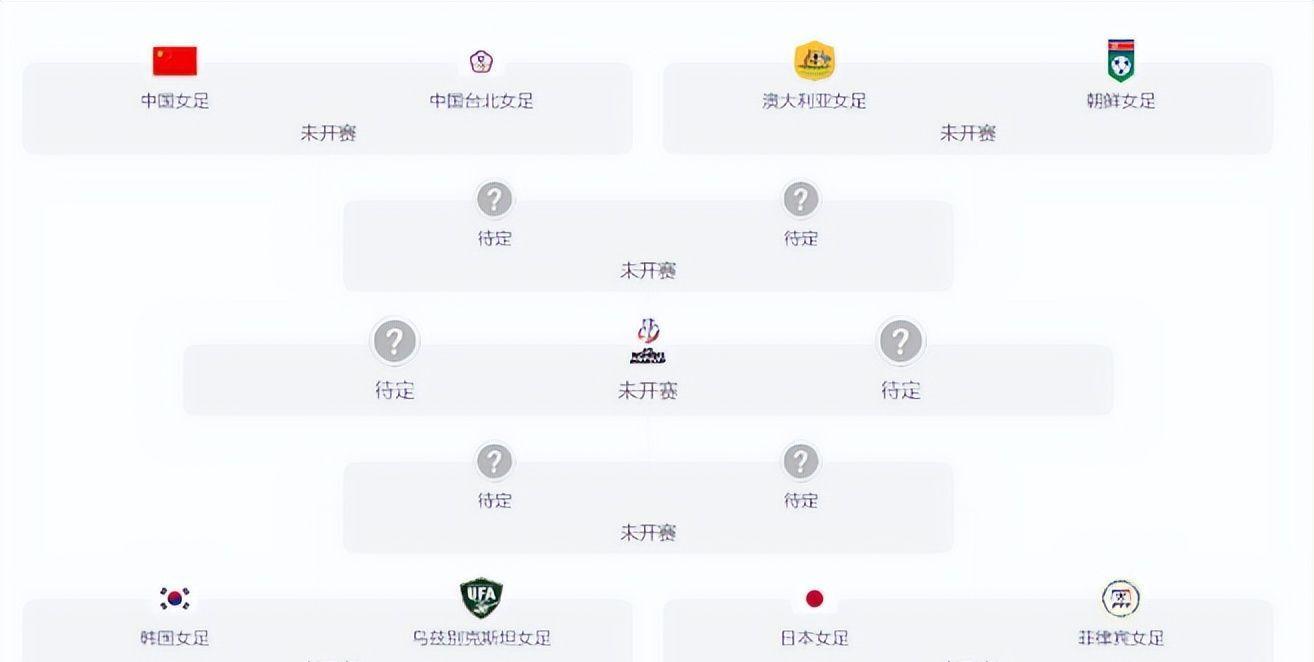 此外,八强对阵格局已然清晰:上半区为韩国对阵乌兹别克斯坦、日本对阵菲律宾;下半区则是中国对阵中国台北、澳大利亚对阵朝鲜。